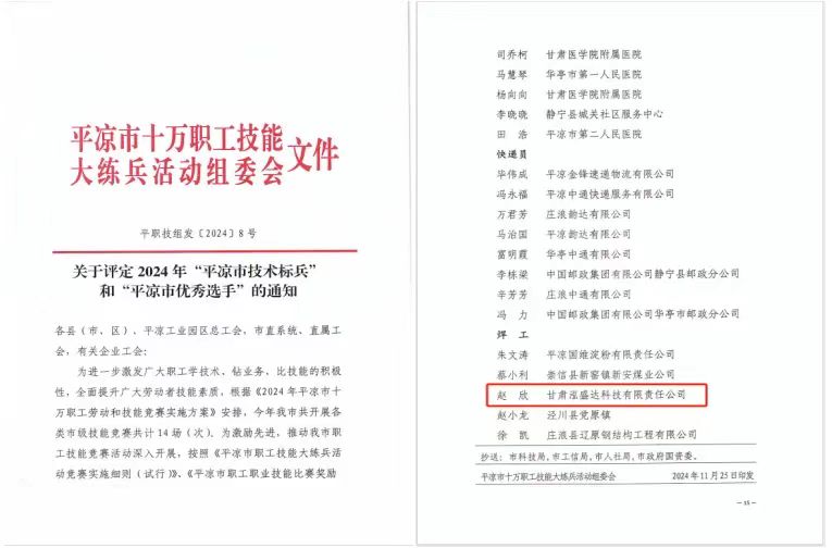 2024-11-26近日,平?jīng)鍪惺f(wàn)職工技能大練兵活動(dòng)組委會(huì)印發(fā)了關(guān)于評(píng)定2024年“平?jīng)鍪屑夹g(shù)標(biāo)兵”和“平?jīng)鍪袃?yōu)秀選手”的通知,甘肅泓盛達(dá)科技有限責(zé)任公司趙欣獲得“平?jīng)鍪袃?yōu)秀選手”稱(chēng)號(hào)。趙欣此次獲得“平?jīng)鍪袃?yōu)秀選手”榮譽(yù)稱(chēng)號(hào),既是對(duì)他個(gè)人敬業(yè)精神的充分肯定,也是對(duì)公司