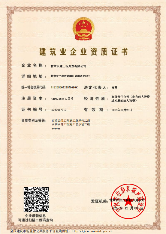 2024-12-05近日,產(chǎn)投集團(tuán)下屬企業(yè)水建公司申請(qǐng)的市政資質(zhì)已順利獲得許可。市政資質(zhì)許可是衡量企業(yè)在市政工程領(lǐng)域綜合實(shí)力的重要標(biāo)準(zhǔn),涵蓋城市道路、橋梁、排水、照明等多個(gè)領(lǐng)域。水建公司具備承接各類(lèi)市政工程項(xiàng)目的資格,且在企業(yè)資產(chǎn)、專(zhuān)業(yè)技術(shù)人員、技術(shù)裝備以及工程業(yè)績(jī)等方