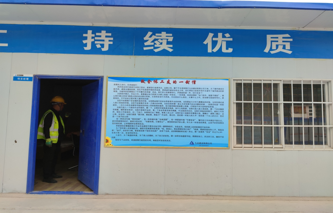 2021-06-02為進(jìn)一步落實(shí)省市關(guān)于安全生產(chǎn)工作的部署要求,結(jié)合第20個(gè)全國“安全生產(chǎn)月”,公司號(hào)召各項(xiàng)目施工單位開展“告工友的一封信”活動(dòng)。孵化基地三期施工方九冶公司和公租房三期項(xiàng)目施工方甘肅二建高度重視,積極響應(yīng),迅速書寫《告工友的一封信》并制作張貼在項(xiàng)目工地醒