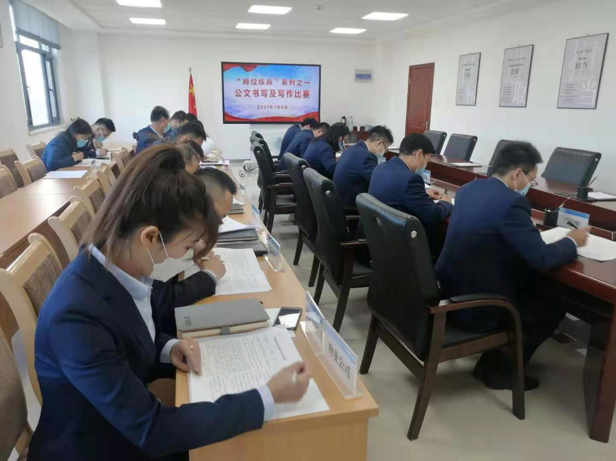 2021-01-08為營造比學(xué)趕超的濃厚氛圍,著力提升員工的綜合業(yè)務(wù)素質(zhì)和崗位技能,激發(fā)員工進(jìn)取意識和干事激情,泓源公司決定開展“崗位練兵”系列活動。1月8日,泓源公司組織中層管理人員開展了“崗位練兵”系列之一公文書寫及寫作比賽。本次比賽共分三部分進(jìn)行,一是硬筆書法書寫