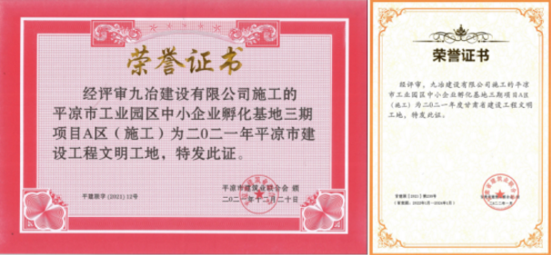 中小企業(yè)孵化基地(三期)項(xiàng)目A區(qū)喜獲省市級(jí)“文明工地”稱(chēng)號(hào)