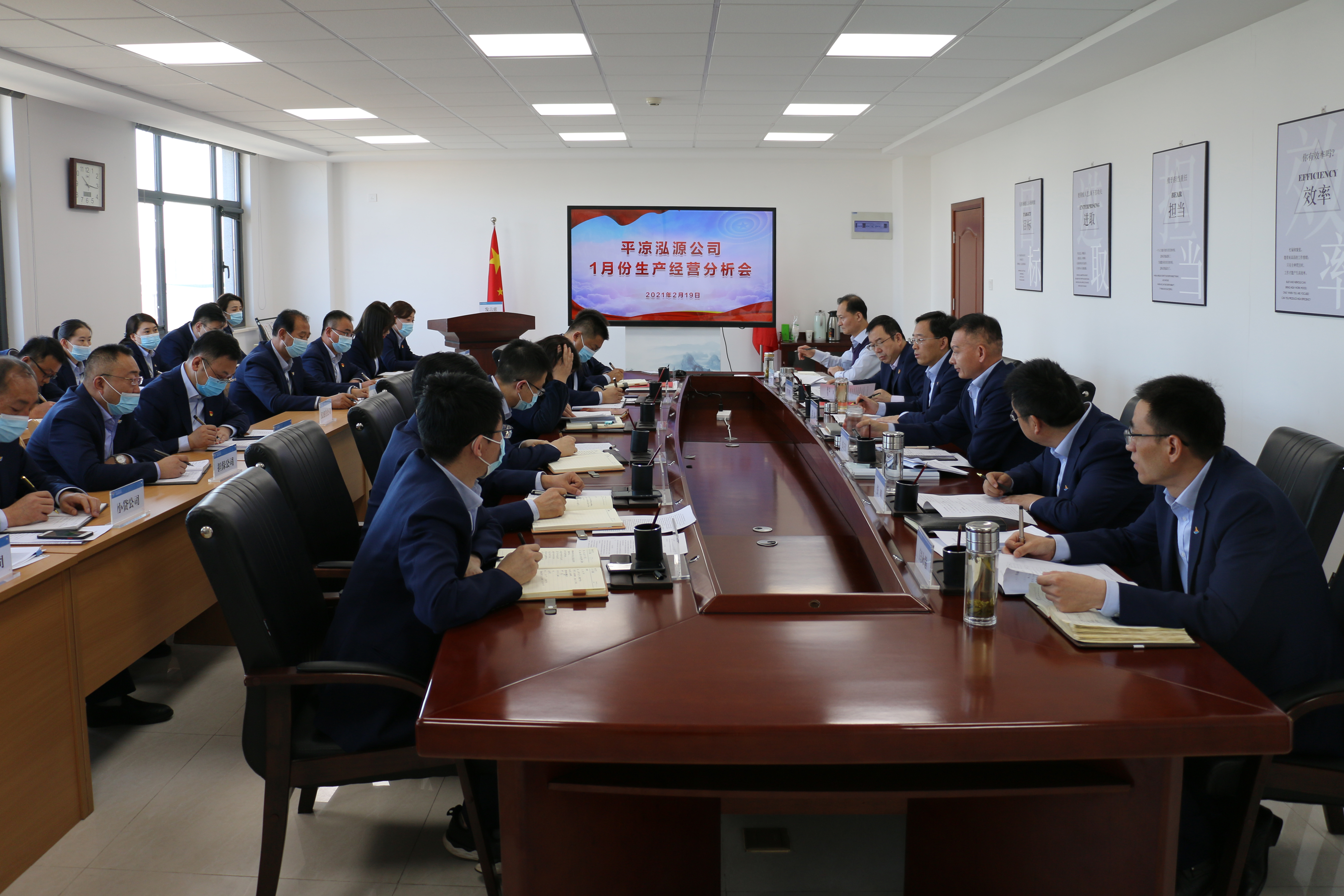 2021-02-192月19日,泓源公司召開1月份生產(chǎn)經(jīng)營分析會議。會上,下屬各公司負(fù)責(zé)人匯報(bào)了1月份生產(chǎn)運(yùn)營情況、存在問題及下一步打算,財(cái)務(wù)人員、外派監(jiān)事作了補(bǔ)充匯報(bào)并提出了工作建議,領(lǐng)導(dǎo)班子成員逐公司作了點(diǎn)評,并提出明確要求。會議指出,1月份,下屬各公司主動作為,結(jié)