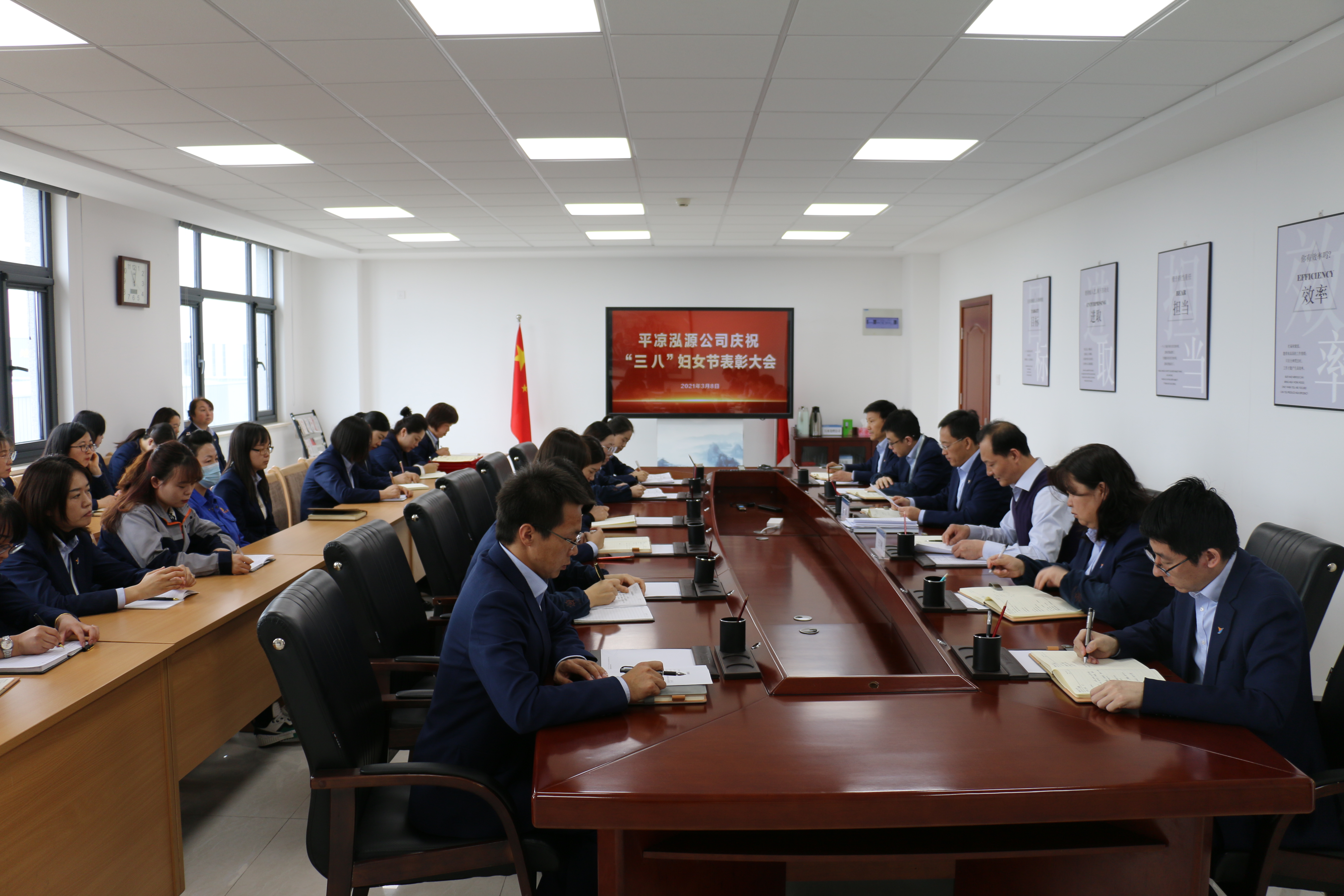 2021-03-093月8日,在第111個國際婦女節(jié)來臨之際,泓源公司組織開展系列活動,熱烈慶?!叭恕眿D女節(jié),向廣大女職工致以節(jié)日的祝福。上午,公司組織召開慶?!叭恕眿D女節(jié)表彰座談會,對2020年以來涌現(xiàn)出的4個“三八紅旗集體”、12名“三八紅旗手”進(jìn)行了表彰獎勵。