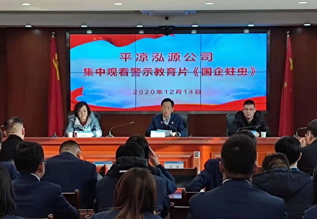 2020-12-14按照市紀(jì)委監(jiān)委、市政府國(guó)資委黨委安排,12月14日,泓源公司組織全體員工集中觀看警示教育片《國(guó)企蛀蟲(chóng)》。市紀(jì)委監(jiān)委第三派駐紀(jì)檢監(jiān)察組一級(jí)主任科員馬杰、市政府國(guó)資委黨建科科長(zhǎng)趙曉榮出席指導(dǎo),公司主要領(lǐng)導(dǎo)主持并講話。會(huì)議強(qiáng)調(diào),廣大員工特別是領(lǐng)導(dǎo)干部、黨員